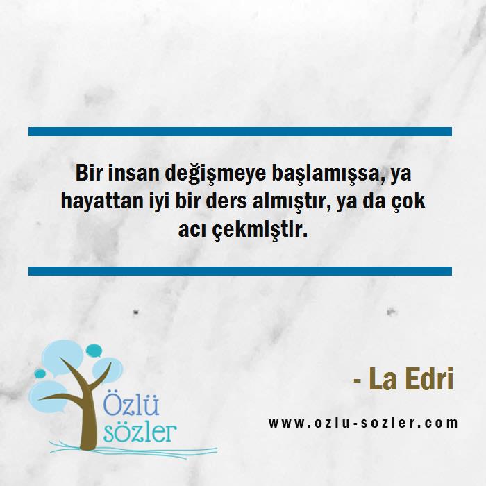 Bir insan değişmeye başlamışsa, ya hayattan iyi bir ders almıştır, ya da çok acı çekmiştir.