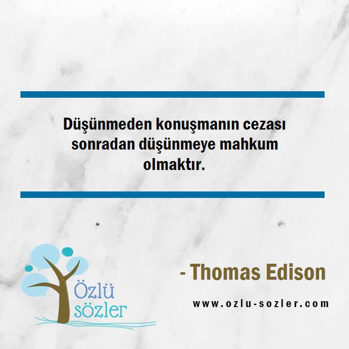 Düşünmeden konuşmanın cezası sonradan düşünmeye mahkum olmaktır.