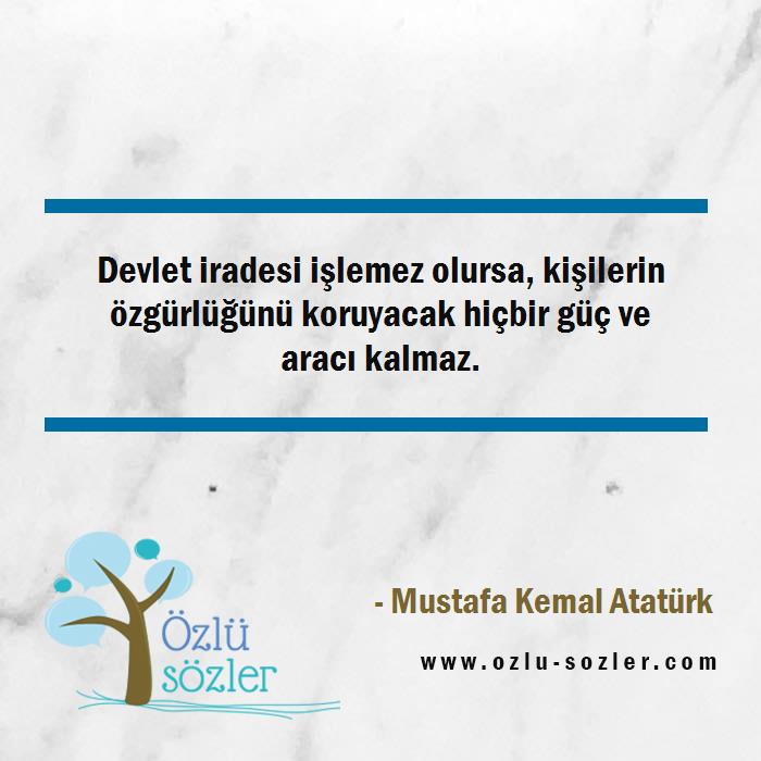 Devlet iradesi işlemez olursa, kişilerin özgürlüğünü koruyacak hiçbir güç ve aracı kalmaz.