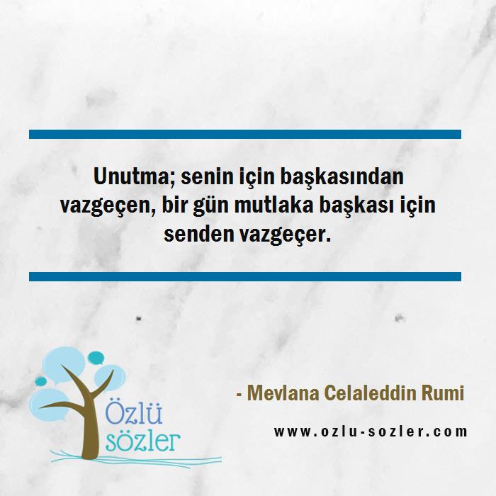 Unutma; senin için başkasından vazgeçen, bir gün mutlaka başkası için senden vazgeçer.