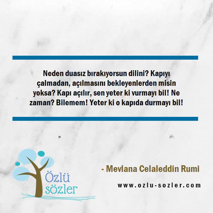 Neden duasız bırakıyorsun dilini? Kapıyı çalmadan, açılmasını bekleyenlerden misin yoksa? Kapı açılır, sen yeter ki vurmayı bil! Ne zaman? Bilemem! Yeter ki o kapıda durmayı bil!