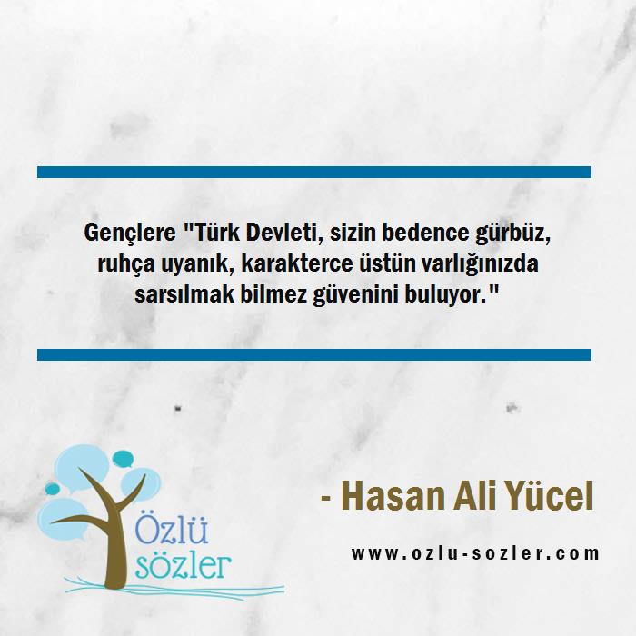 Gençlere "Türk Devleti, sizin bedence gürbüz, ruhça uyanık, karakterce üstün varlığınızda sarsılmak bilmez güvenini buluyor."