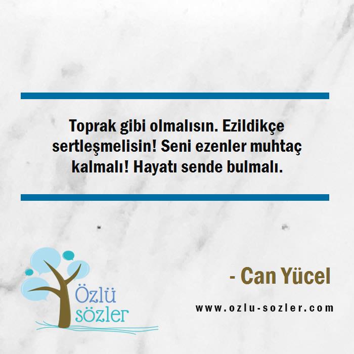Toprak gibi olmalısın. Ezildikçe sertleşmelisin! Seni ezenler muhtaç kalmalı! Hayatı sende bulmalı.