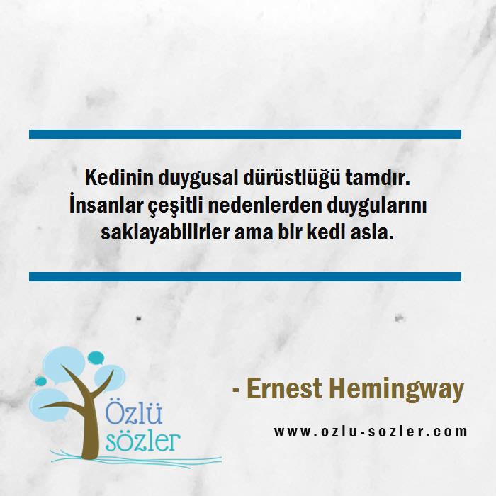 Kedinin duygusal dürüstlüğü tamdır. İnsanlar çeşitli nedenlerden duygularını saklayabilirler ama bir kedi asla.