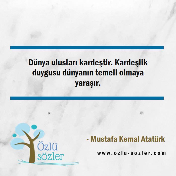 Dünya ulusları kardeştir. Kardeşlik duygusu dünyanın temeli olmaya yaraşır.