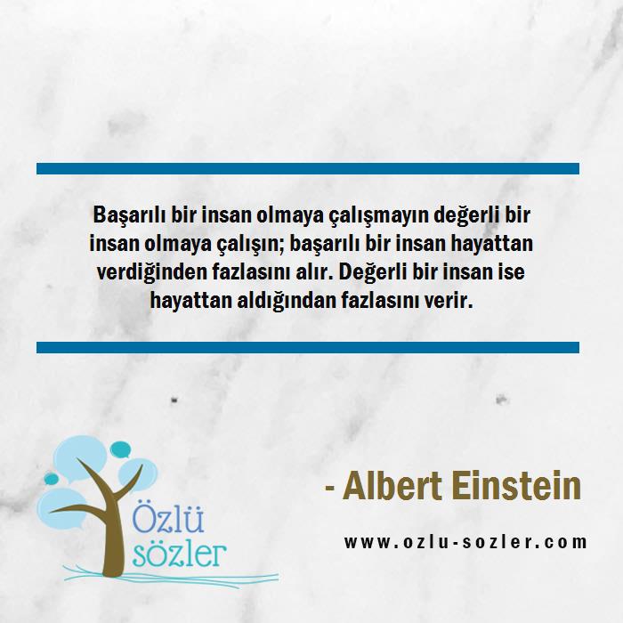 Başarılı bir insan olmaya çalışmayın değerli bir insan olmaya çalışın; başarılı bir insan hayattan verdiğinden fazlasını alır. Değerli bir insan ise hayattan aldığından fazlasını verir.