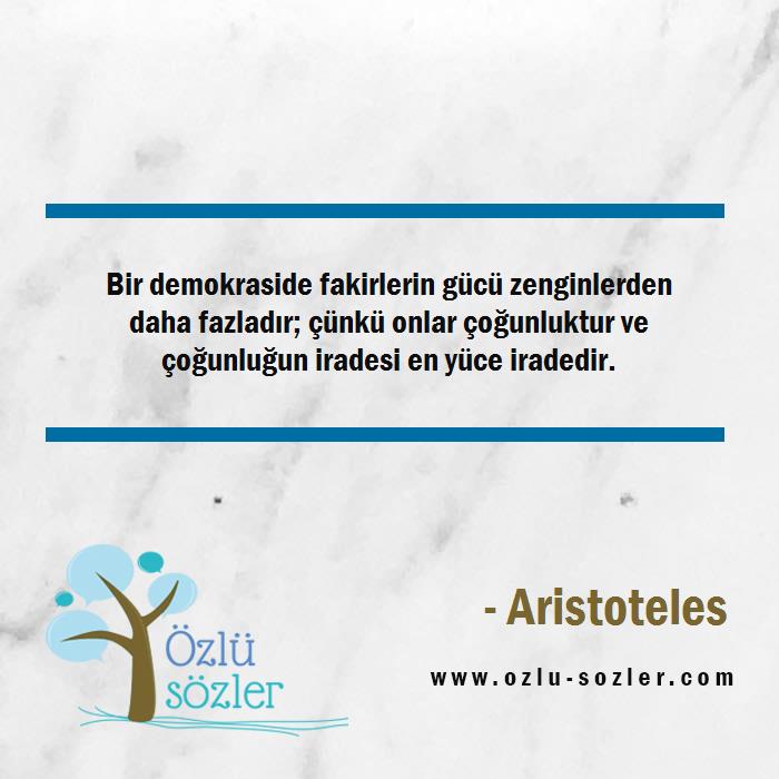 Bir demokraside fakirlerin gücü zenginlerden daha fazladır; çünkü onlar çoğunluktur ve çoğunluğun iradesi en yüce iradedir.