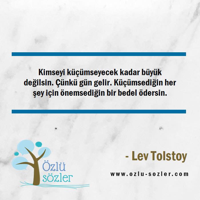 Kimseyi küçümseyecek kadar büyük değilsin. Çünkü gün gelir. Küçümsediğin her şey için önemsediğin bir bedel ödersin.