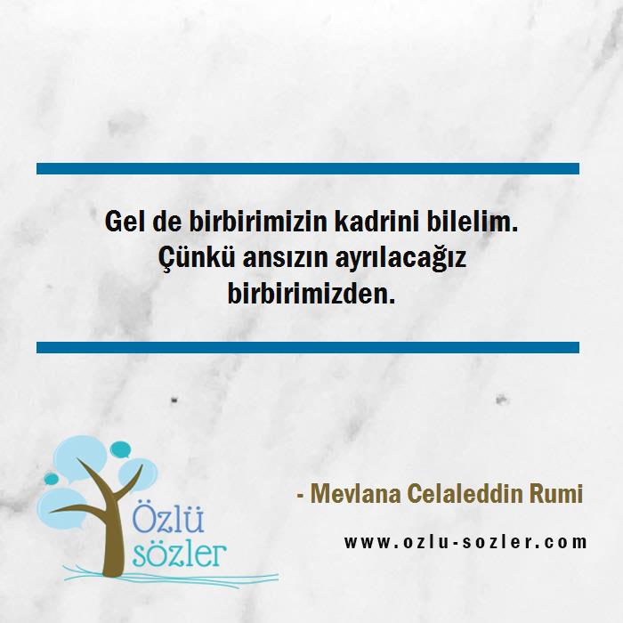 Gel de birbirimizin kadrini bilelim. Çünkü ansızın ayrılacağız birbirimizden.