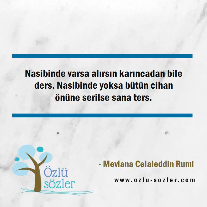 Nasibinde varsa alırsın karıncadan bile ders. Nasibinde yoksa bütün cihan önüne serilse sana ters.