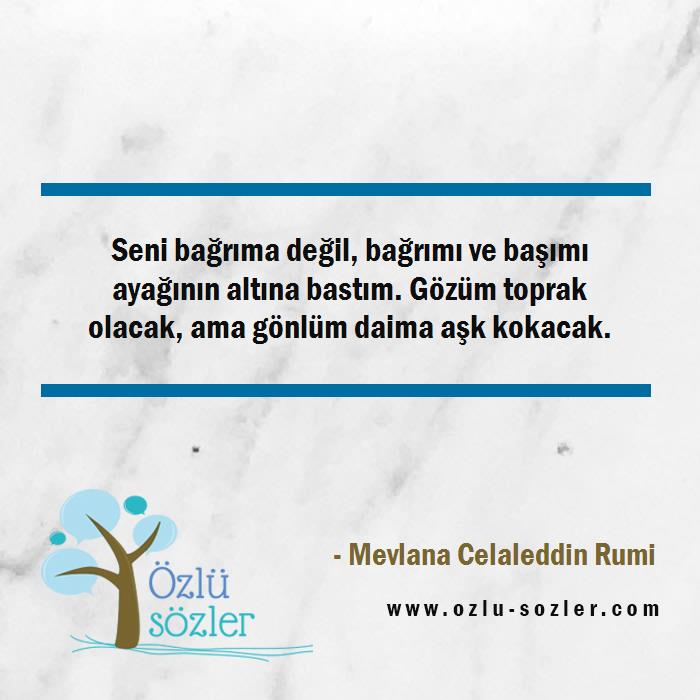 Seni bağrıma değil, bağrımı ve başımı ayağının altına bastım. Gözüm toprak olacak, ama gönlüm daima aşk kokacak.