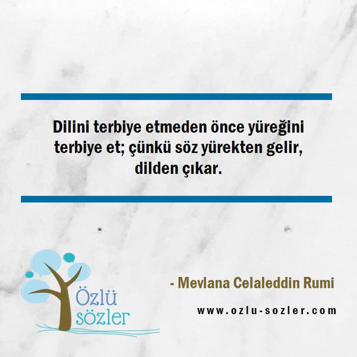 Dilini terbiye etmeden önce yüreğini terbiye et; çünkü söz yürekten gelir, dilden çıkar.