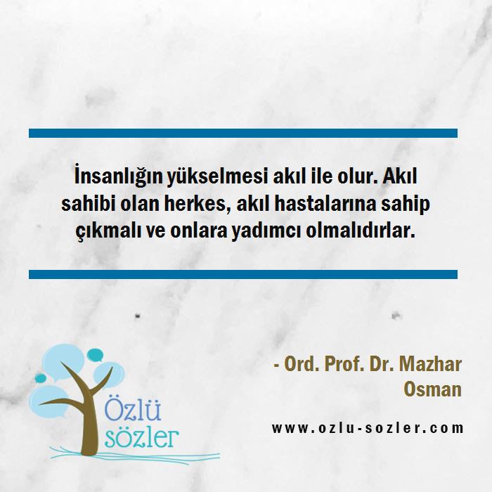 İnsanlığın yükselmesi akıl ile olur. Akıl sahibi olan herkes, akıl hastalarına sahip çıkmalı ve onlara yadımcı olmalıdırlar.
