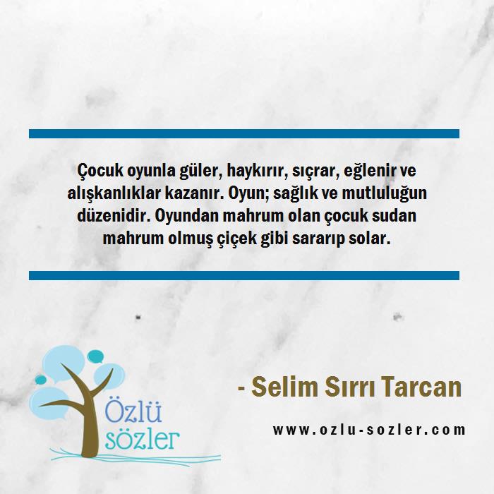 Görsel İndir Paylaş Çocuk oyunla güler, haykırır, sıçrar, eğlenir ve alışkanlıklar kazanır. Oyun; sağlık ve mutluluğun düzenidir. Oyundan mahrum olan çocuk sudan mahrum olmuş çiçek gibi sararıp solar.