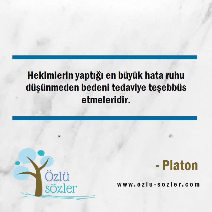 Hekimlerin yaptığı en büyük hata ruhu düşünmeden bedeni tedaviye teşebbüs etmeleridir.