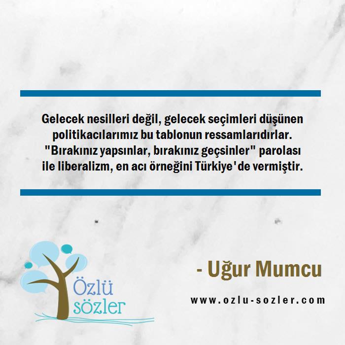 Gelecek nesilleri değil, gelecek seçimleri düşünen politikacılarımız bu tablonun ressamlarıdırlar. "Bırakınız yapsınlar, bırakınız geçsinler" parolası ile liberalizm, en acı örneğini Türkiye'de vermiştir.