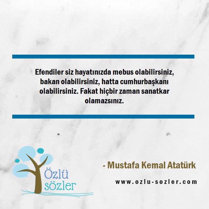 Efendiler siz hayatınızda mebus olabilirsiniz, bakan olabilirsiniz, hatta cumhurbaşkanı olabilirsiniz. Fakat hiçbir zaman sanatkar olamazsınız.