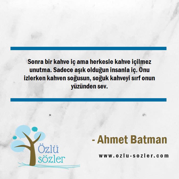 Sonra bir kahve iç ama herkesle kahve içilmez unutma. Sadece aşık olduğun insanla iç. Onu izlerken kahven soğusun, soğuk kahveyi sırf onun yüzünden sev.