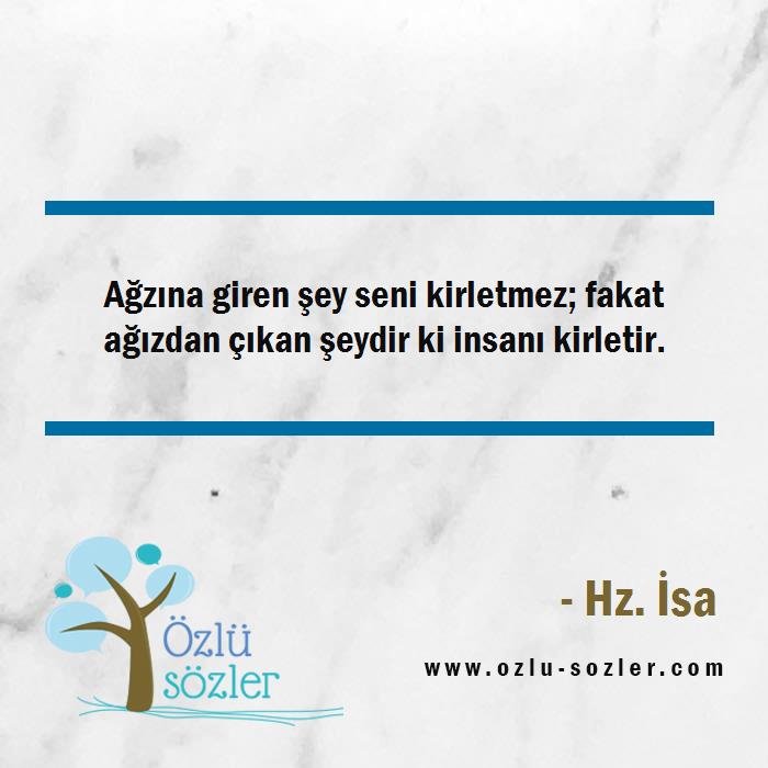 Ağzına giren şey seni kirletmez; fakat ağızdan çıkan şeydir ki insanı kirletir.