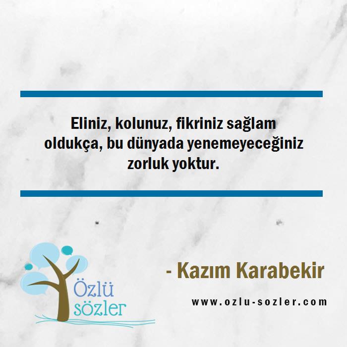 Eliniz, kolunuz, fikriniz sağlam oldukça, bu dünyada yenemeyeceğiniz zorluk yoktur.