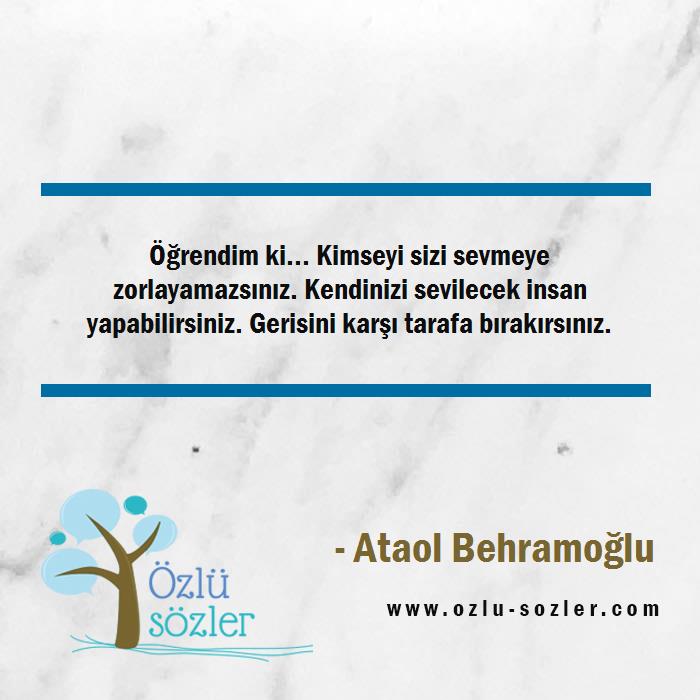 Öğrendim ki... Kimseyi sizi sevmeye zorlayamazsınız. Kendinizi sevilecek insan yapabilirsiniz. Gerisini karşı tarafa bırakırsınız.