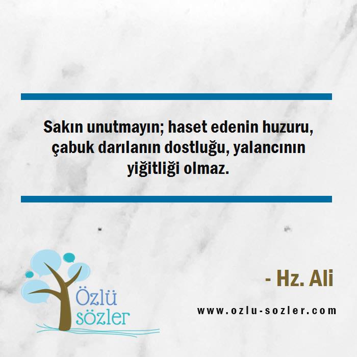 Sakın unutmayın; haset edenin huzuru, çabuk darılanın dostluğu, yalancının yiğitliği olmaz.