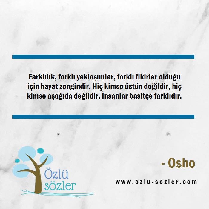 Farklılık, farklı yaklaşımlar, farklı fikirler olduğu için hayat zengindir. Hiç kimse üstün değildir, hiç kimse aşağıda değildir. İnsanlar basitçe farklıdır.