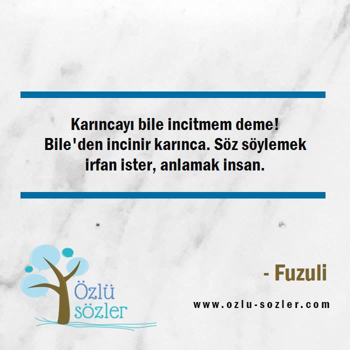 Karıncayı bile incitmem deme! Bile'den incinir karınca. Söz söylemek irfan ister, anlamak insan.