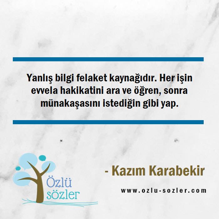 Kazım Karabekir'in yanlış ile ilgili söylediği sözler
