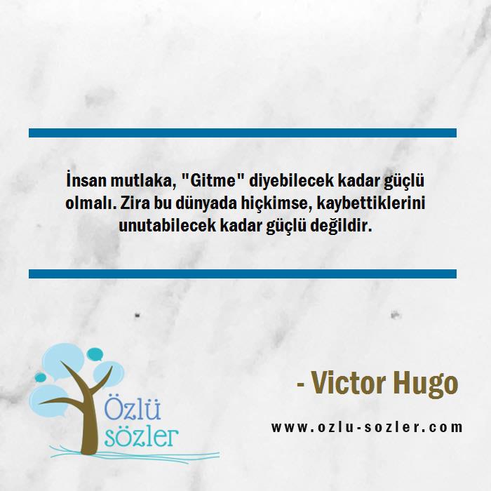 İnsan mutlaka, "Gitme" diyebilecek kadar güçlü olmalı. Zira bu dünyada hiçkimse, kaybettiklerini unutabilecek kadar güçlü değildir.