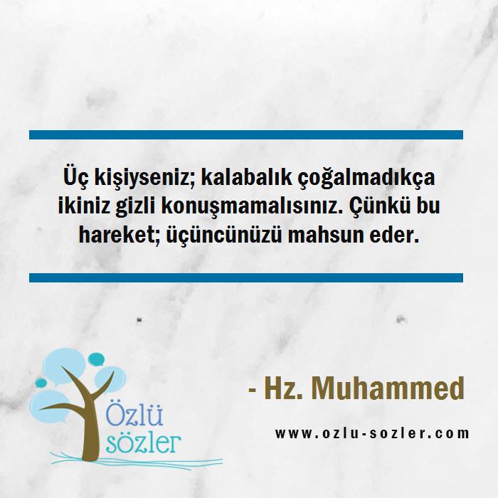 Üç kişiyseniz; kalabalık çoğalmadıkça ikiniz gizli konuşmamalısınız. Çünkü bu hareket; üçüncünüzü mahsun eder.