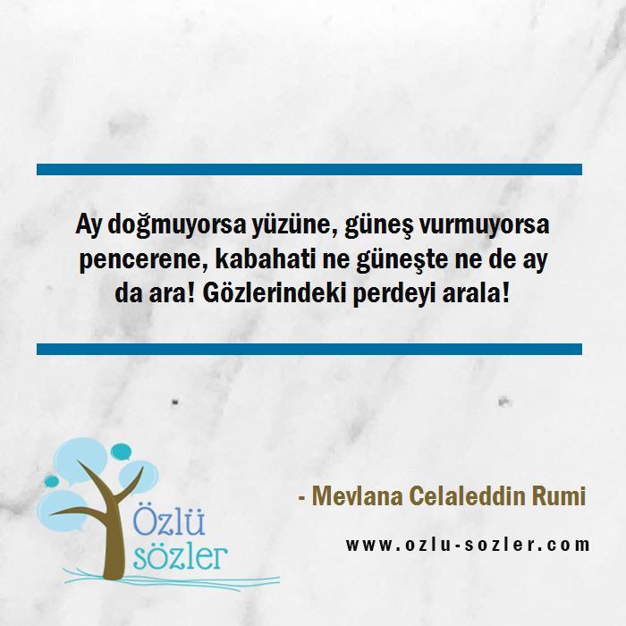 Ay doğmuyorsa yüzüne, güneş vurmuyorsa pencerene, kabahati ne güneşte ne de ay da ara! Gözlerindeki perdeyi arala!