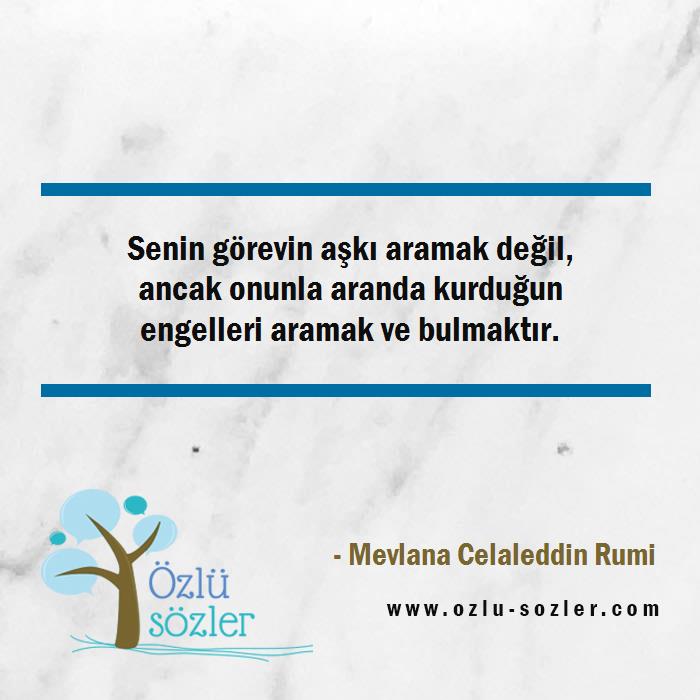Senin görevin aşkı aramak değil, ancak onunla aranda kurduğun engelleri aramak ve bulmaktır.