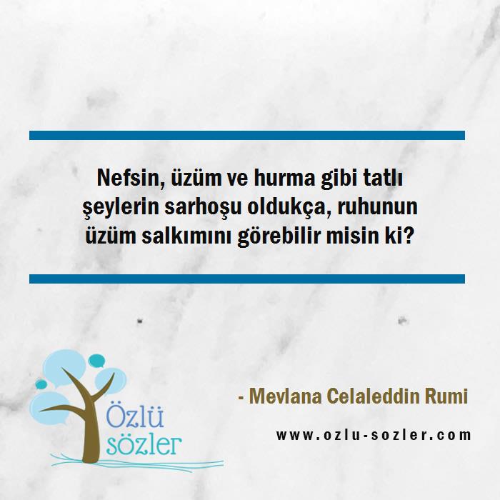 Nefsin, üzüm ve hurma gibi tatlı şeylerin sarhoşu oldukça, ruhunun üzüm salkımını görebilir misin ki?