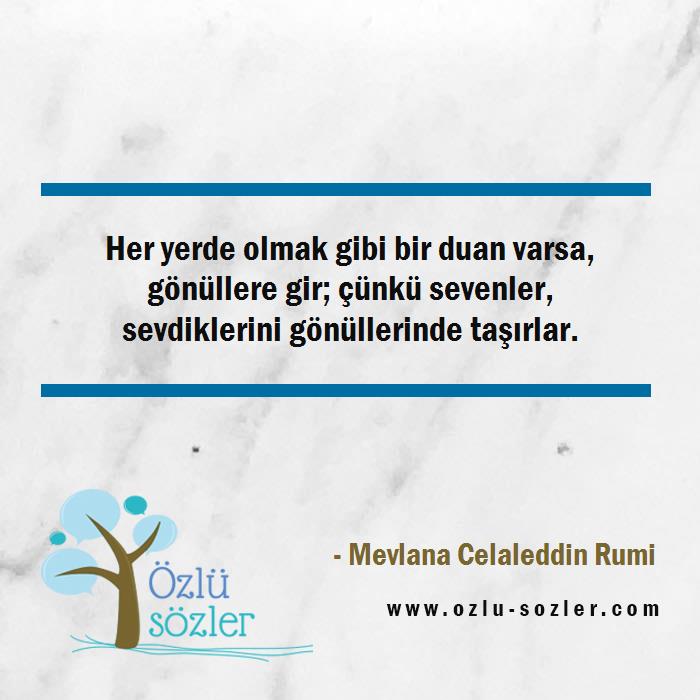 Her yerde olmak gibi bir duan varsa, gönüllere gir; çünkü sevenler, sevdiklerini gönüllerinde taşırlar.