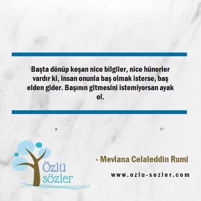 Başta dönüp koşan nice bilgiler, nice hünerler vardır ki, insan onunla baş olmak isterse, baş elden gider. Başının gitmesini istemiyorsan ayak ol.