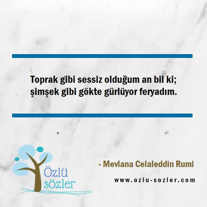 Toprak gibi sessiz olduğum an bil ki; şimşek gibi gökte gürlüyor feryadım.