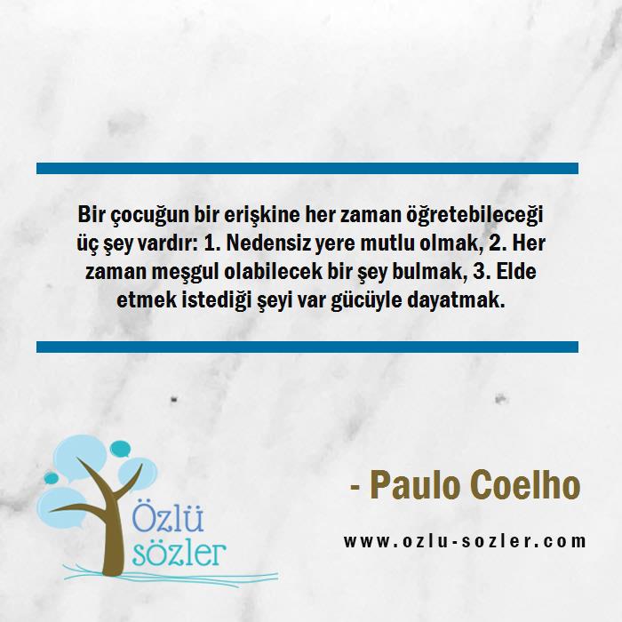 Bir çocuğun bir erişkine her zaman öğretebileceği üç şey vardır: 1. Nedensiz yere mutlu olmak, 2. Her zaman meşgul olabilecek bir şey bulmak, 3. Elde etmek istediği şeyi var gücüyle dayatmak.