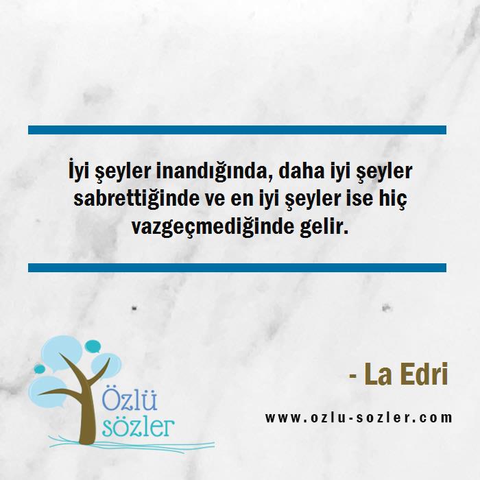 İyi şeyler inandığında, daha iyi şeyler sabrettiğinde ve en iyi şeyler ise hiç vazgeçmediğinde gelir.
