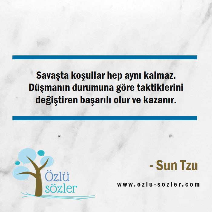 Savaşta koşullar hep aynı kalmaz. Düşmanın durumuna göre taktiklerini değiştiren başarılı olur ve kazanır.