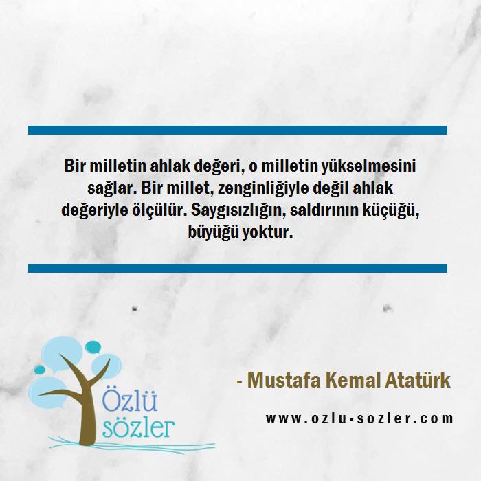Bir milletin ahlak değeri, o milletin yükselmesini sağlar. Bir millet, zenginliğiyle değil ahlak değeriyle ölçülür. Saygısızlığın, saldırının küçüğü, büyüğü yoktur.