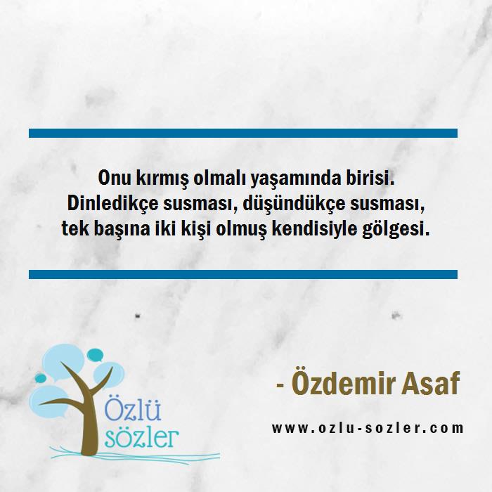 Onu kırmış olmalı yaşamında birisi. Dinledikçe susması, düşündükçe susması, tek başına iki kişi olmuş kendisiyle gölgesi.