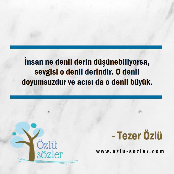 İnsan ne denli derin düşünebiliyorsa, sevgisi o denli derindir. O denli doyumsuzdur ve acısı da o denli büyük.