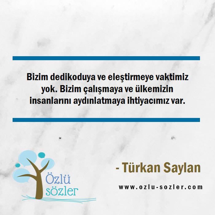 Bizim dedikoduya ve eleştirmeye vaktimiz yok. Bizim çalışmaya ve ülkemizin insanlarını aydınlatmaya ihtiyacımız var.