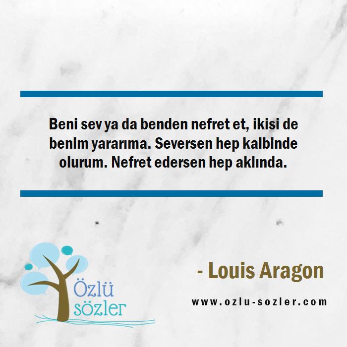 Beni sev ya da benden nefret et, ikisi de benim yararıma. Seversen hep kalbinde olurum. Nefret edersen hep aklında.